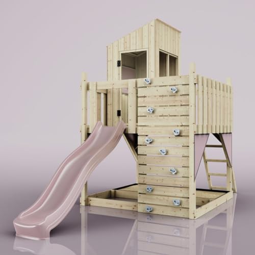 Rebo Spielturm aus Holz mit Wellenrutsche | Outdoor Klettergerüst mit Plattform, Spielhaus, Kletterwand, Sandkasten und Kleterseil – 1