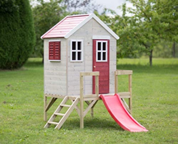 Wendi Toys M9 Spielhaus Garten Holz | Spielhaus Kinder Holz | Spielturm mit Rutsche und Baby Schaukel | Klettergerüst Outdoor Spielplatz für Garten | Kinderspielzeug ab 3 Jahre | Stelzenhaus Kinder