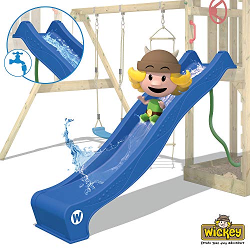WICKEY Spielturm Klettergerüst TinyWave mit Schaukel & blauer Rutsche, Kletterturm mit Sandkasten, Leiter & Spiel-Zubehör – 6